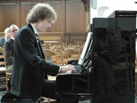 Nadat de nieuwe piano al geklonken in de eredienst van 1 maart 2009 bij de begeleiding van het zingen, volgde een eerste pianoconcert door de jonge pianist Lennart Morée. Hij speelde op fantastische wijze enkele composities van J.S. Bach, Chopin en Debussy. Hij sloot af met een indrukwekkende improvisatie. De aanwezigen waren onder de indruk van de prachtige klank van het nieuwe instrument. Het concert kreeg een feestelijk accent door dat de voorzitter van de Stichting Vrienden van de Dorpskerk, dhr. Wim Vonk, een cheque overhandigde van € 5000 aan de Hervormde gemeente Barendrecht in de persoon van de kerkmusicus Hans van Gelder. De foto's geven een indruk van het prachtige instrument en de virtuose jonge pianist Lennart Morée. |